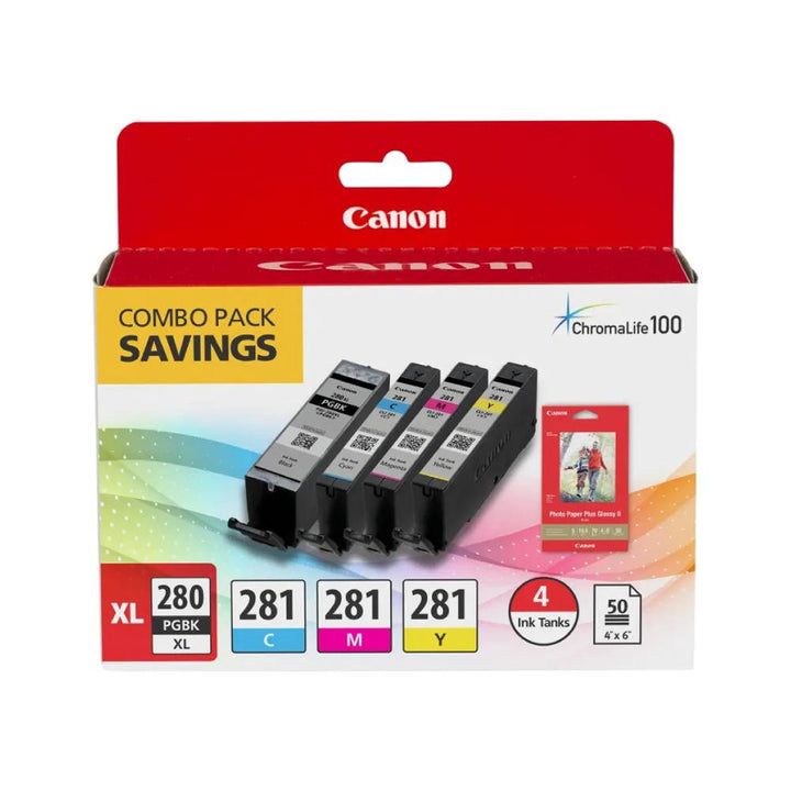 Canon - PGI-280 XL/CLI-281 4-Pack High-Yield - Pigment Black, Standard Capacity - Cyan, Magenta, Yellow Cartridges + Photo Paper - Black/Cyan/Magenta/Yellow